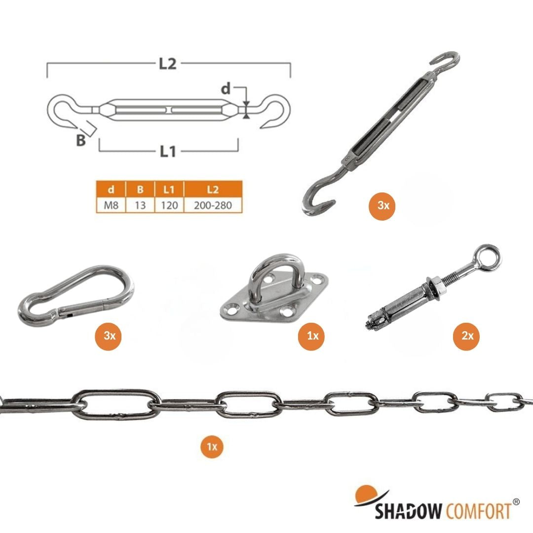 Complete bevestigingsset – driehoekig schaduwdoek M8