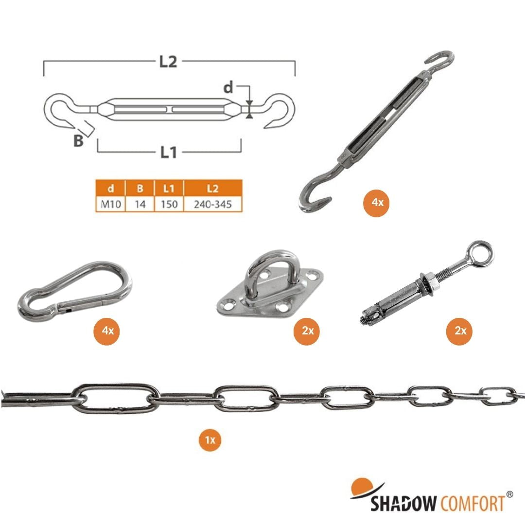 Complete bevestigingsset – Vierhoekig schaduwdoek M10