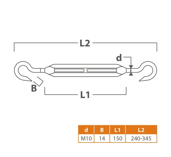 De spanschroef is gemaakt van hoogwaardig roestvrij staal (AISI 316) en is bestand tegen weer en wind. Je kunt hem ook combineren met een RVS ketting voor extra flexibiliteit in de afstand tot de bevestigingspunten. Ideaal voor een veilige én strakke montage.